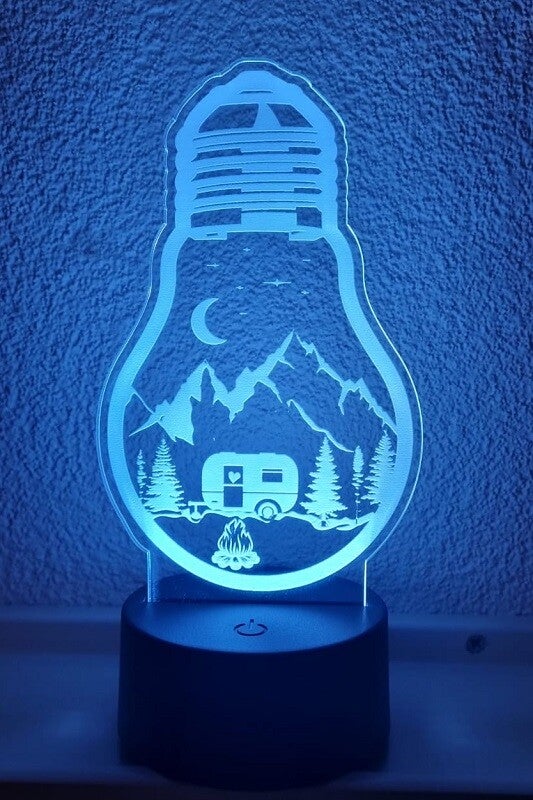 Deze LED-lamp is gemaakt van 4mm acryl (plexiglas) en wordt geleverd inclusief voet, USB-kabel (voor voeding) en afstandbediening.